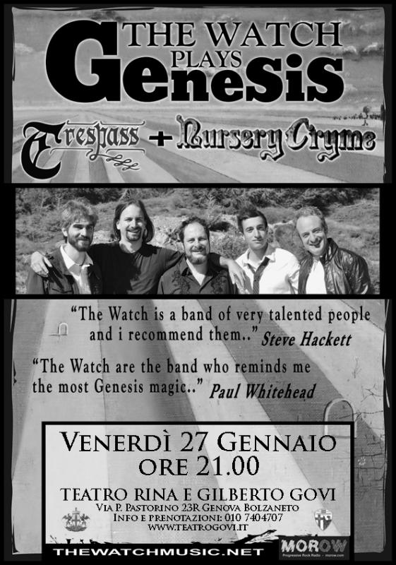 The Watch è una band di Milano, di 5 componenti, la cui musica è ispirata al rock progressivo classico degli anni ’70 ed in particolare alla musica dei Genesis.: melodia ed energia sono le caratteristiche principali della loro musica e le esibizioni live il loro punto di forza.