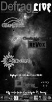 Serata Rock al Defrag con tre band dalle diverse sfumature: si parte con i GlareShift, rock band con influenze space-psichedeliche, prog ed elettroniche. E' la volta poi dei Revox Rock'n'blues con la voce di Claudia McDowell e infine gli Alchem che propongono un metal con varie sfaccettature grazie a venature dark e prog.